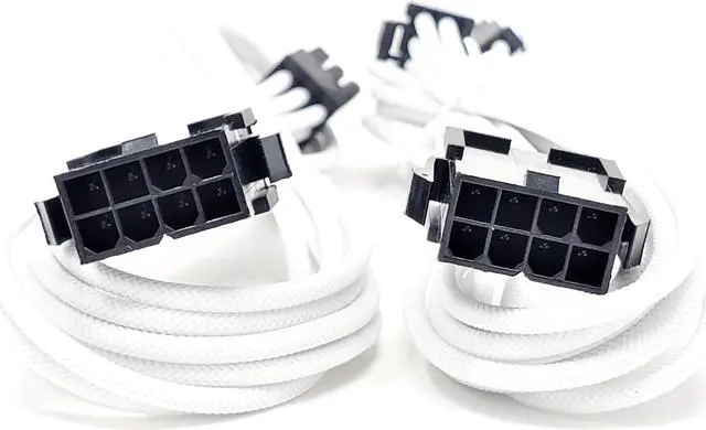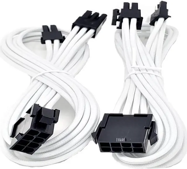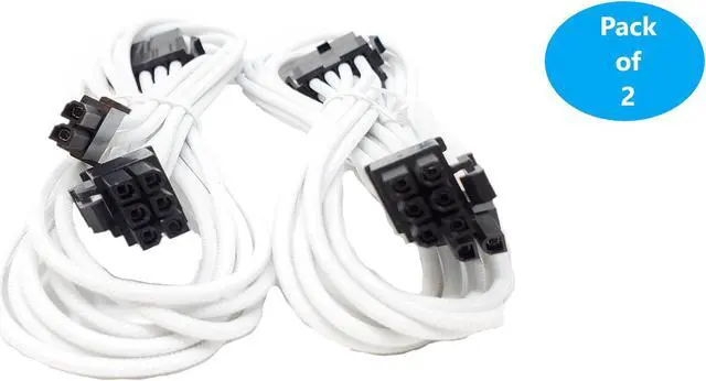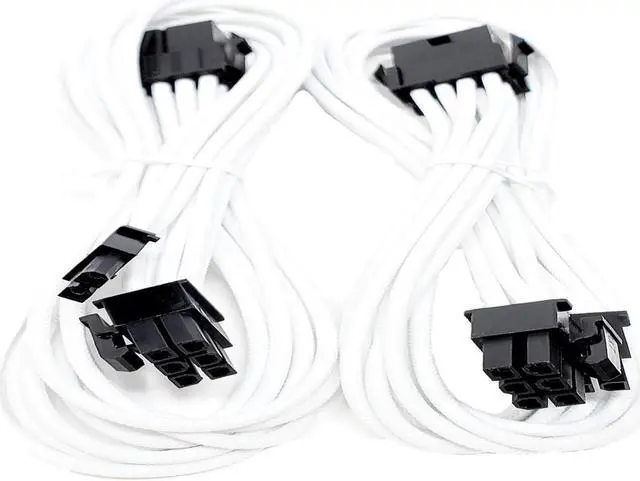 Premium Sleeved 8 (6+2) Pin PCI-e GPU Power Extension Cable – 45cm ( 1.5 ft) / White / 2-Pack.