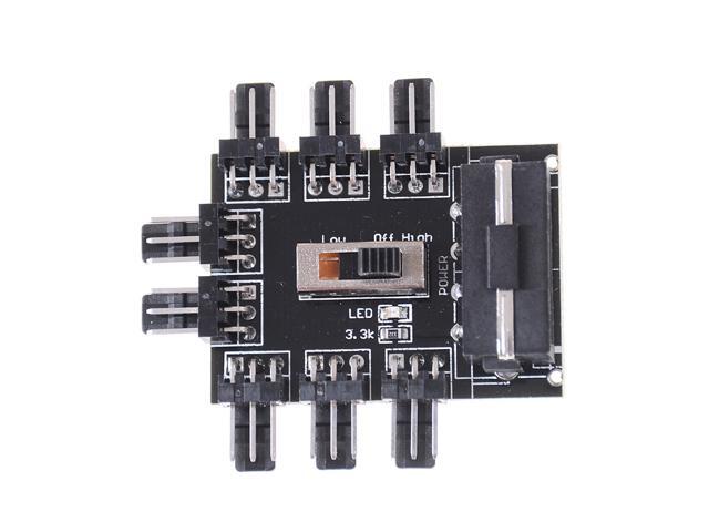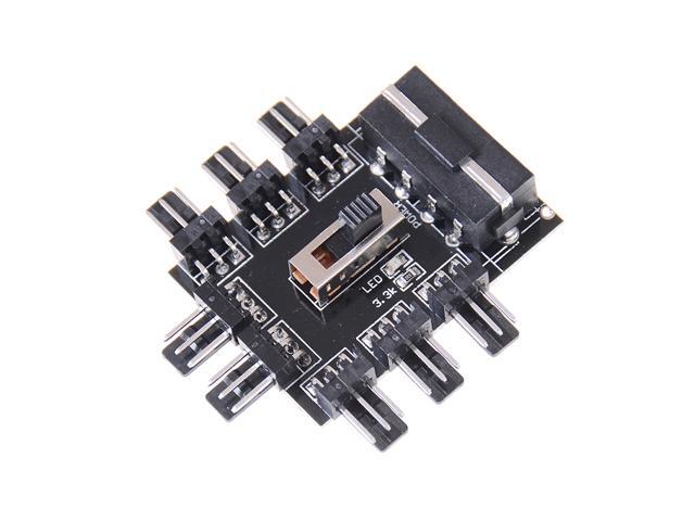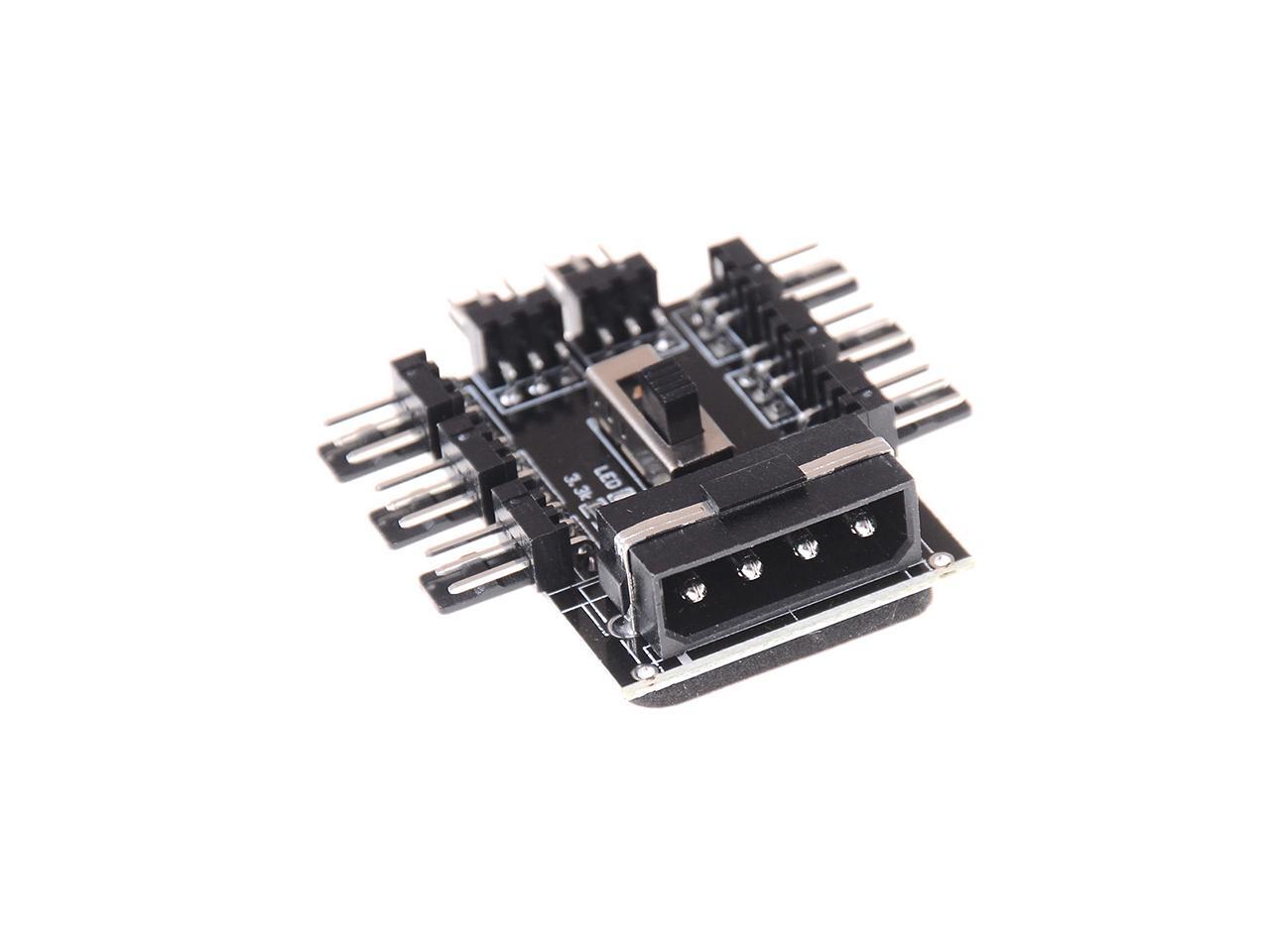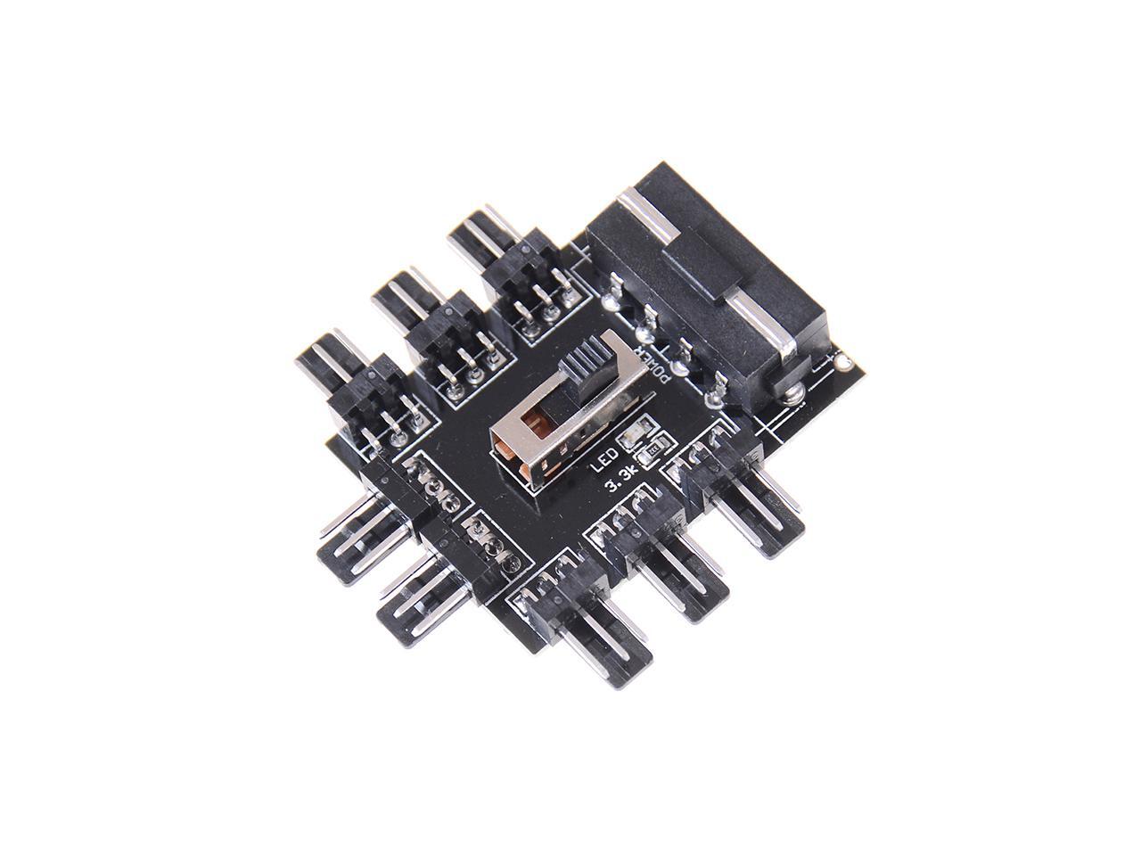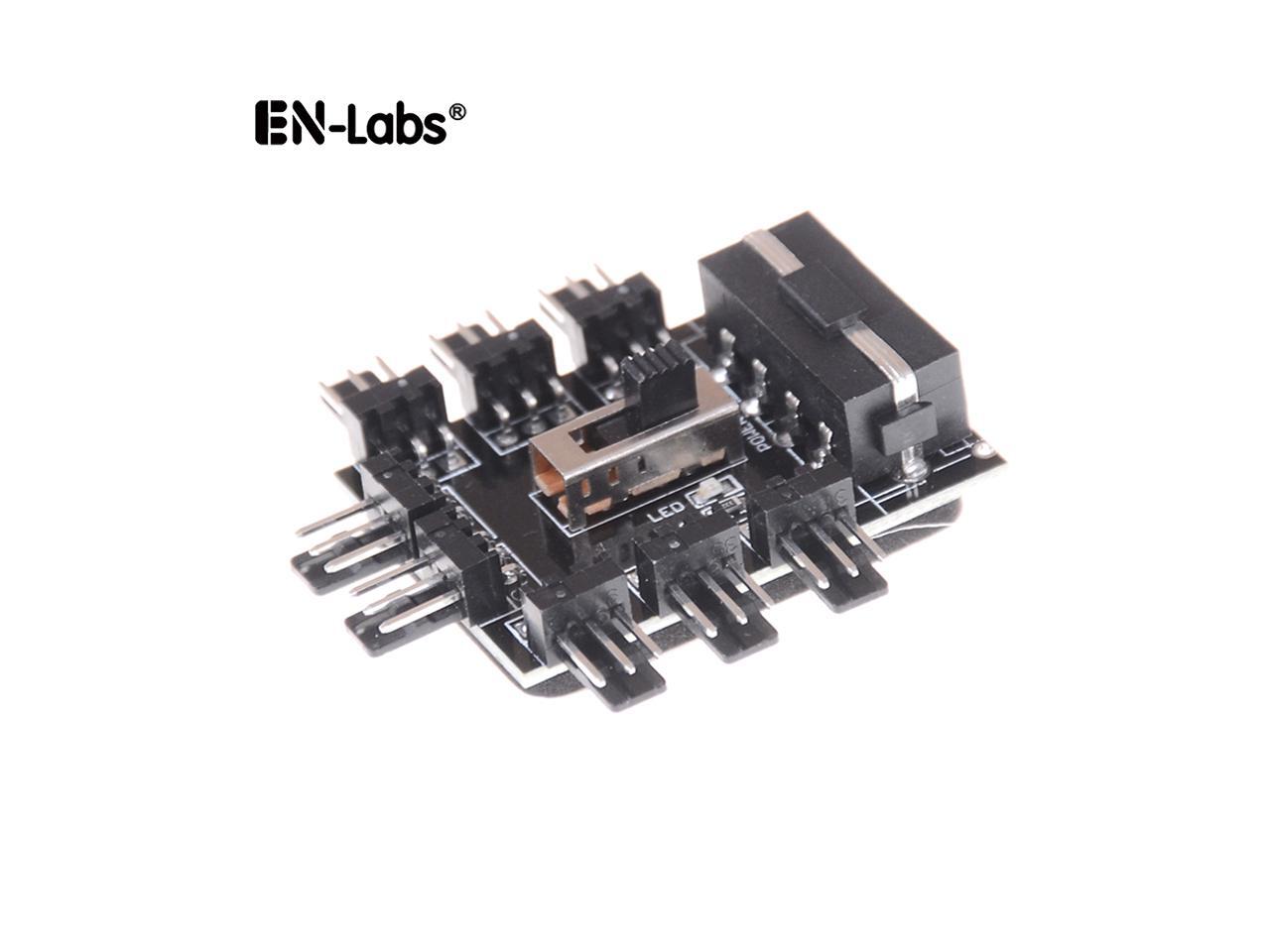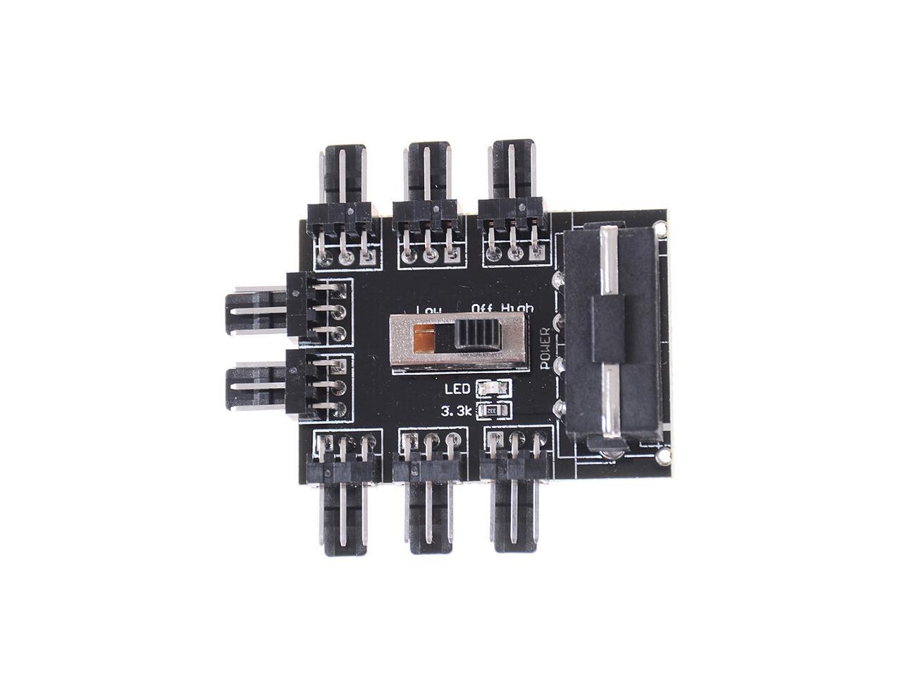 EN-Labs PC Fan Speed Controller - 8 Way Cooling Fan Hub w/ 7/12V Voltage Switch - 1 to 8 Multi Way Splitter for 3-Pin / 4 Pin Case Fan - PCB Adapter - Power by Molex