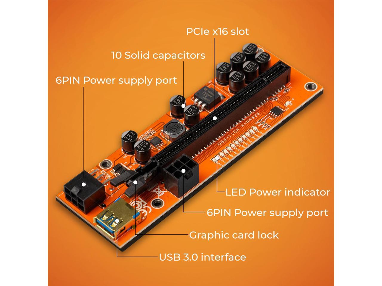 VER 11 PRO: Version 011 Pro riser kits are the newest and top of the line solution for setting up GPU mining rigs.