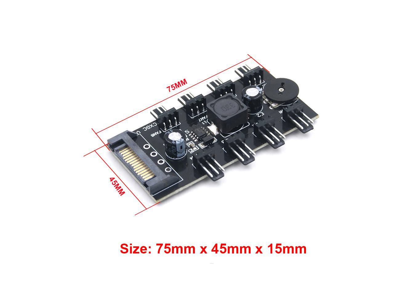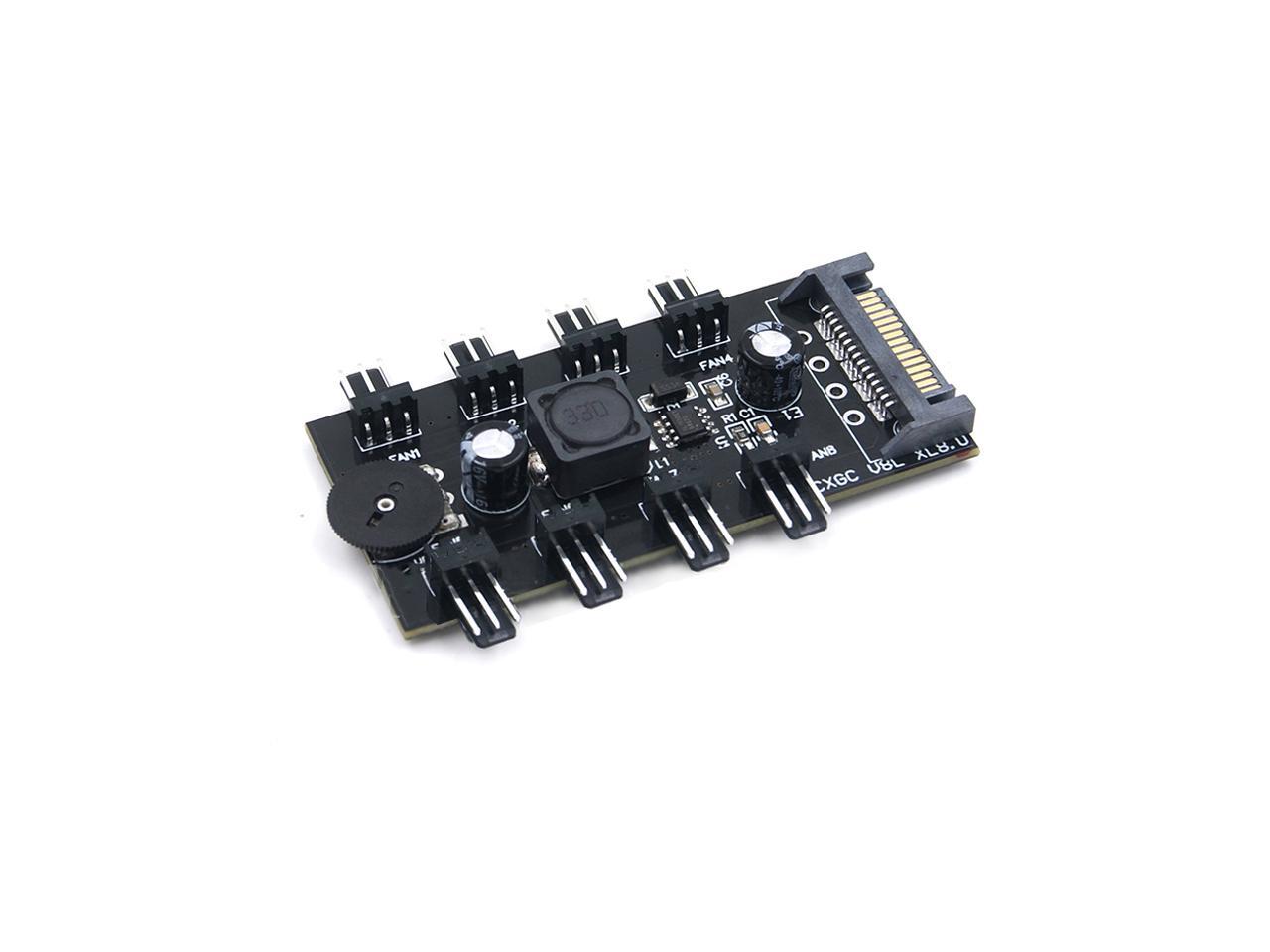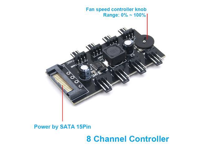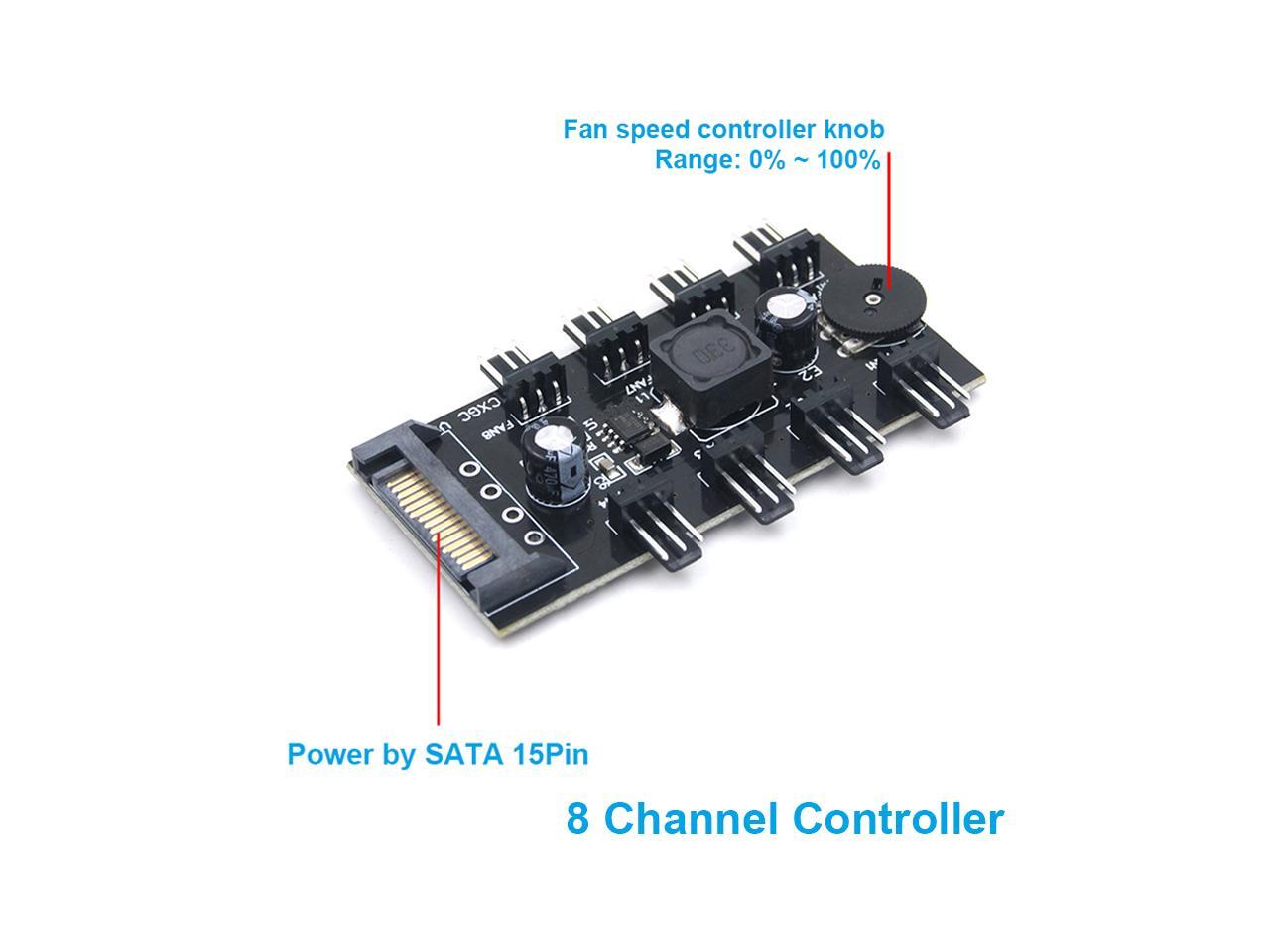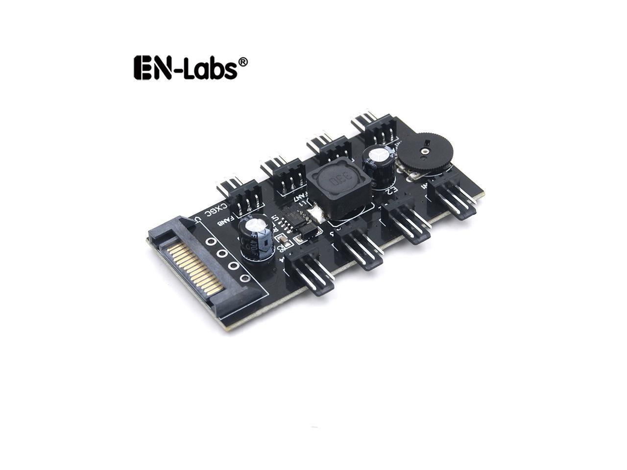 EnLabs TX3CO8S 8 Channel Computer PC 3pin CPU Cooler Case Fan Speed Temperature Controller w/ Rubber Backed Tap for Internal & Mining - 8 Way 3 pin Fan Hub, Power by SATA 15pin