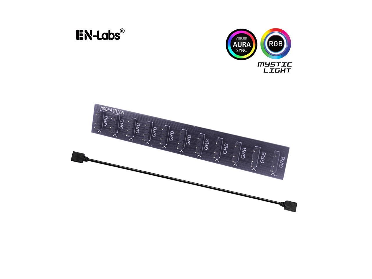 5V 3Pin ARGB LED Hub,SATA Powered 10 Way 5V 3 Pin Addressable RGB Splitter Controller with Adhesive for Computer LED Strip Lighting,Fans & Cooler- 1.64ft Extension Cable Include