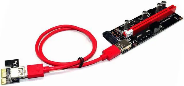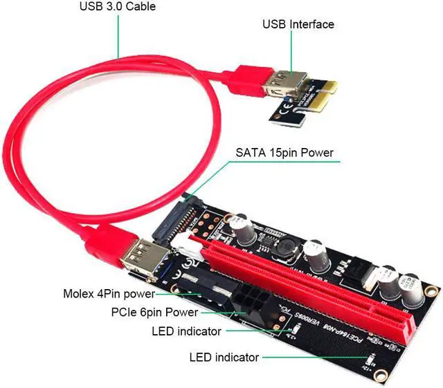 Molex 4pin, SATA and 6-pin PCI-E power interface Integrate on PCB, only one power input is needed, Please DO NOT try to plug 2 or 3 power interface simultaneously.