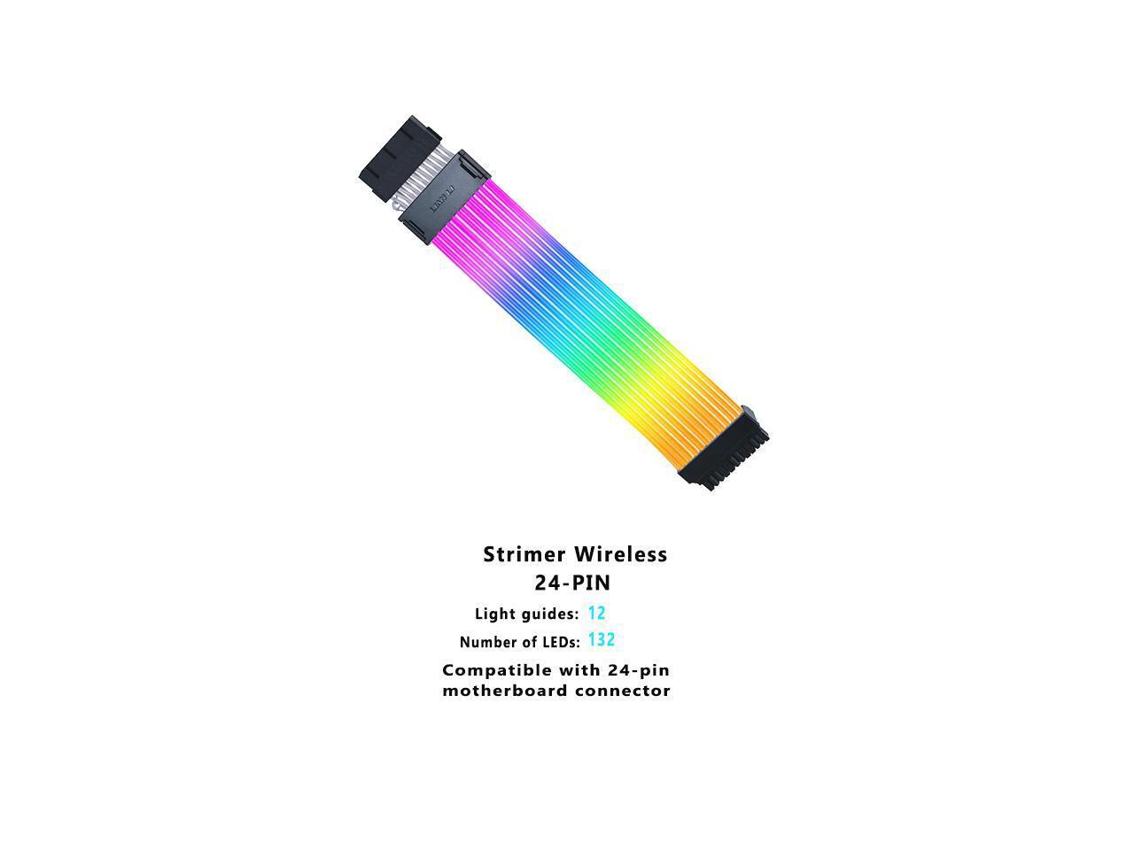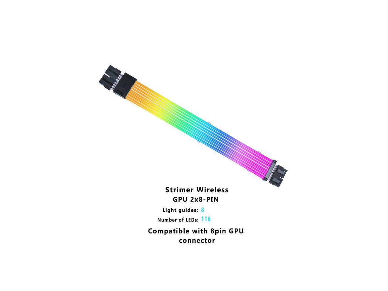 - The STRIMER Wireless 24-Pin has a total of 132 LEDs and the STRIMER Wireless GPU 2x8-PIN has 116 LEDs