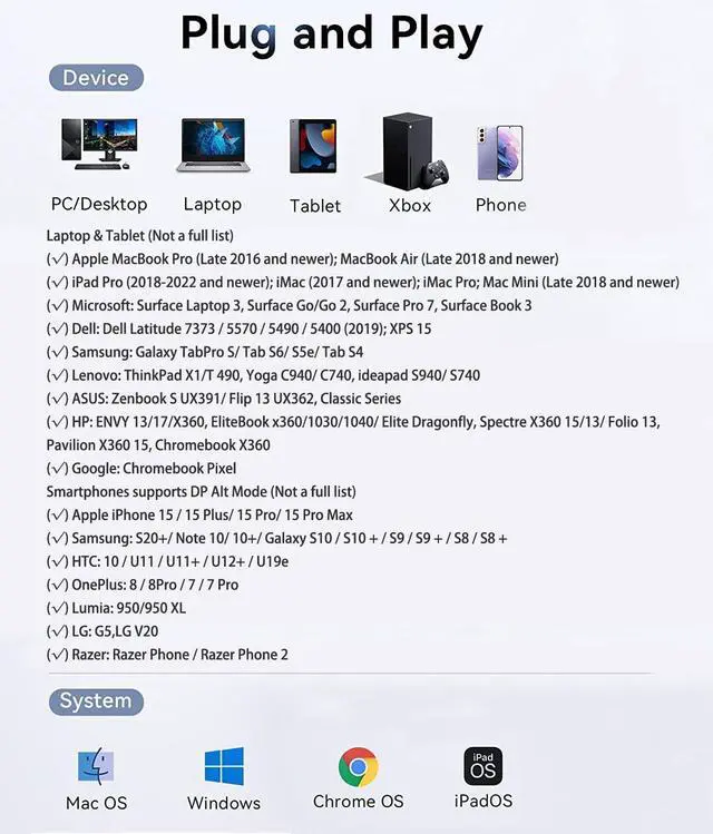 | Compatible Devices | Compatible for iPhone 17/17 Pro/17 Pro Max/Air/16/16 Plus/16 Pro/16 Pro Max/15/15 Plus/15 Pro/15 Pro Max, Galaxy S24/S24+/S24 Ultra, S23/S23+/S23 Ultra, S22/S22+/S22 Ultra, S21/S21+/S21 Ultra, S20/S20+/S20 Ultra, S20 Z Flip, S10 S9 S8 Plus, Note 20/10; iPad Pro, iPad mini 6, Macbook, Mackbook Air; Pixel 8/7/6/5/4/3/2 XL and more |