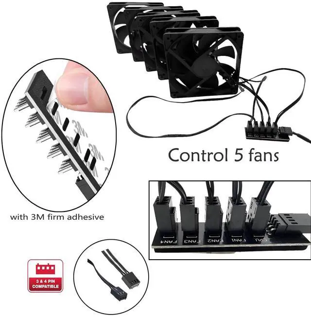 It can control 5 fans simultaneously, better power supply for PC computer case internal motherboard fans,Widely Compatible with 12V 4-pin and 3-pin fans.