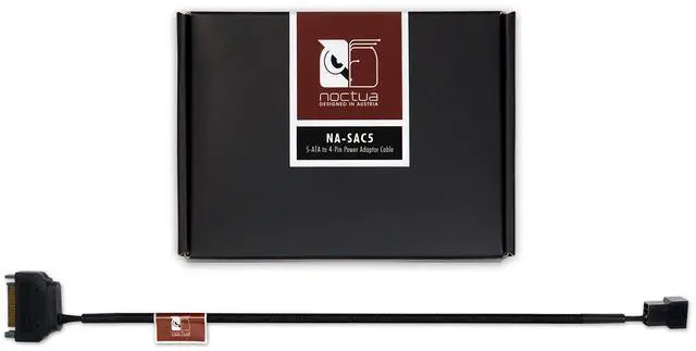 The NA-SAC5 is a fully sleeved S-ATA to 4-pin power adaptor cable. It is compatible with both 3-pin and 4-pin fans and allows them to be powered directly from the power supply’s S-ATA connectors. Combined with the NA-SYC1 y-cables (available separately), it is ideal for powering multiple high-wattage fans without risking damage to the motherboard fan header.