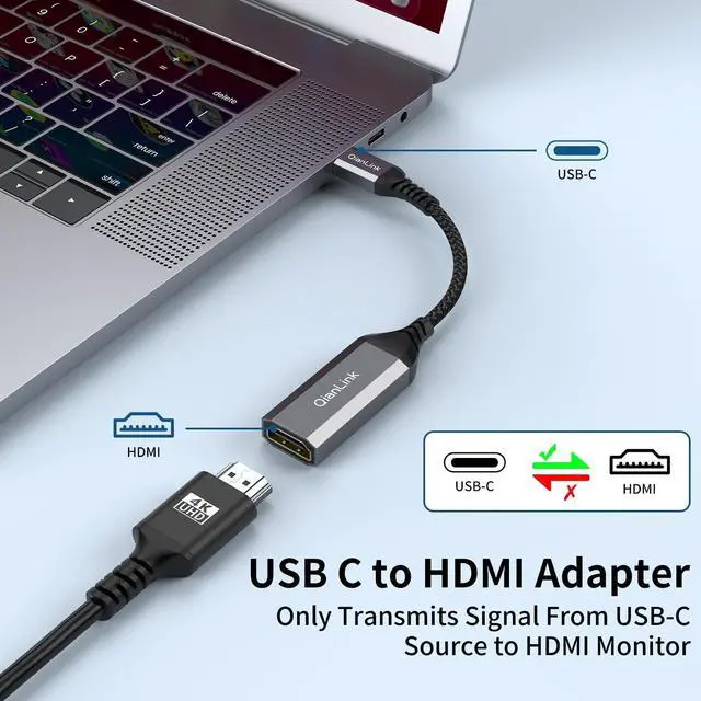 QianLink USB-C to HDMI Adapter provides a cost-effective and easy solution for connecting a desktop, laptop, or other devices with USB-C port to a HDMIdisplay such as monitor, projector or TV. Connect the USB-C male end of the converter to the USB-C port of your laptop or computer, and connect the HDMI female end to your HDMI cable from the display.