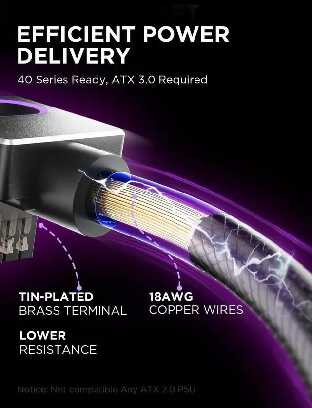 Supports all GPUs with 12VHPWR (12+4/16-pin) interface, including RTX 3090 Ti, RTX 4070, RTX 4070 Ti, RTX 4070 Ti SUPER, RTX 4080, RTX 4090.