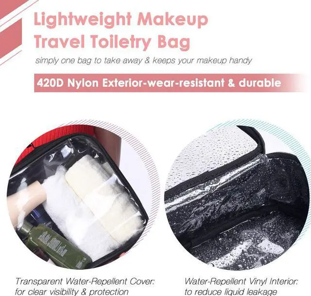 - Durable & Water-Resistant - Made of a 420D nylon exterior for wear-resistance, while featuring a water-repellent vinyl interior to prevent leakages of liquids and lotions, great for use in the toilet or bathroom while traveling