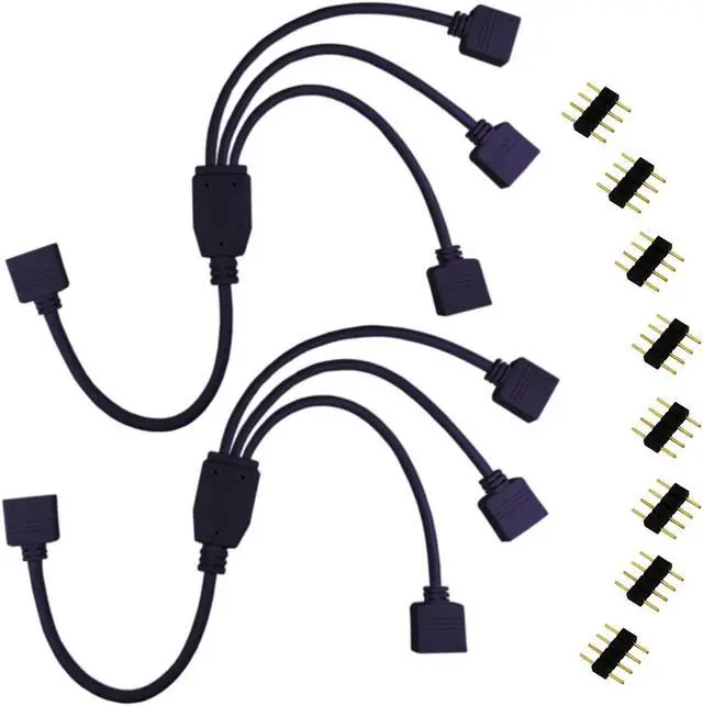 PackageIncludes: 2x RGB splitter cable 1 to 3 ports (Black) 8x 4-pin male to male plugs