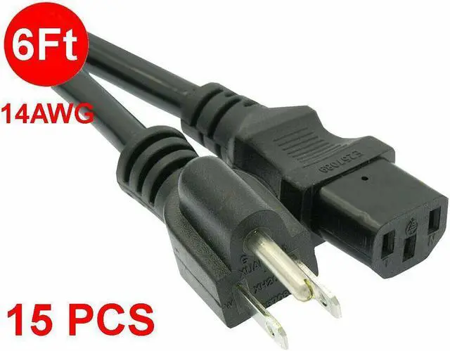15 PCS 6Ft 14awg Gauge Heavy Duty Power Cord Computer Monitor Cable 5-15P to C13