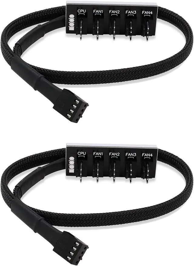 Support 4-pin and 3-pin fans cable, the 1 to 5 splitter 5 way hub fan power extension cable compatible with 4-pin and 3-pin PC case motherboard fans.