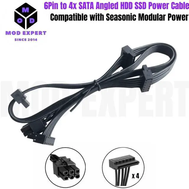 • YEPLOOK 6Pinx to 4 SATA SSD HDD Power Supply Cable for Seasonic KM3 Series X-750 X-850 SS-1050XP3 SS-1200XP3 M12II Evo Series 520 620 650 750 850 Snow Silent 750 1050 FOCUS PLUS Gold SSR-850FX Modular