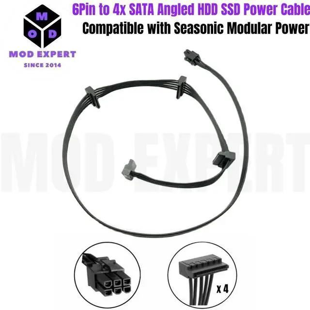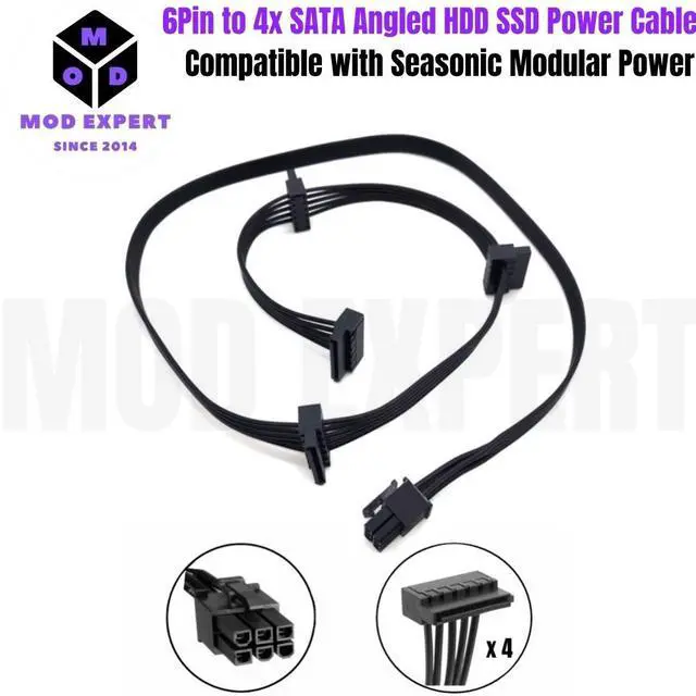 YEPLOOK 6Pin to 4 SATA Angled, SSD HDD Power Supply Cable for Seasonic KM3 Series X-750 X-850 SS-1050XP3 SS-1200XP3 M12II Evo Series 520 620 650 750 850 Snow Silent 750 1050 FOCUS PLUS Gold SSR-850FX