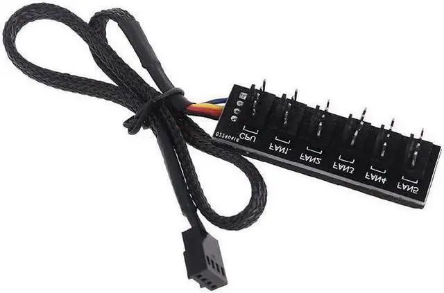 PWM Fan Hub PC Fan Splitter 6 Way Sleeved Power Supply Cable Adapter Internal Motherboard Fan Power Extension Cable Cord pwm fan hub splitterFeatures: Excellent 1 to 6 splitter 6 way 4-Pin fan power supply extension cable cord, better power supply for PC computer case internal motherboard fans. the 1 to 6 splitter 6way fan power extension cable compatible with 4-Pin and 3-Pin PC case motherboard fans. Black nylon braided cable, more durable and make the internal of pc case looks more clean and tidy. Easy to insert, just plug and play, 6 way 4-pin male connector jack fan hub cable. It allows the motherboard to control all the fans and regulate their speed.