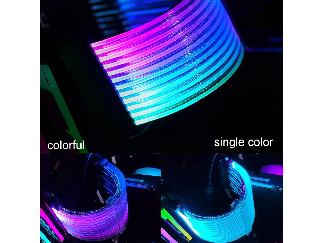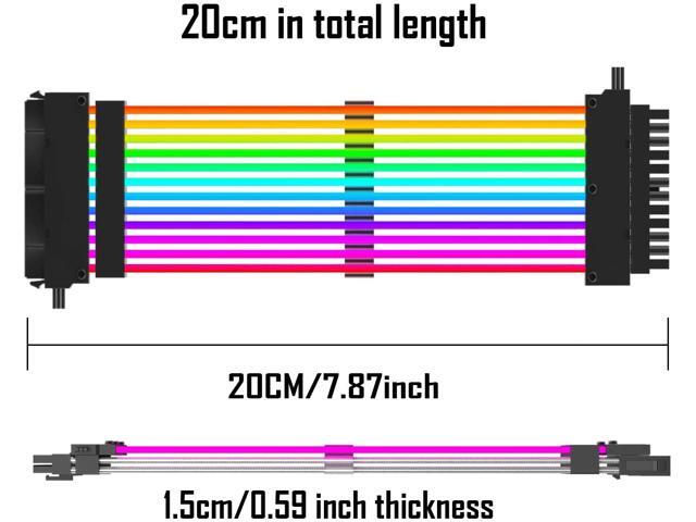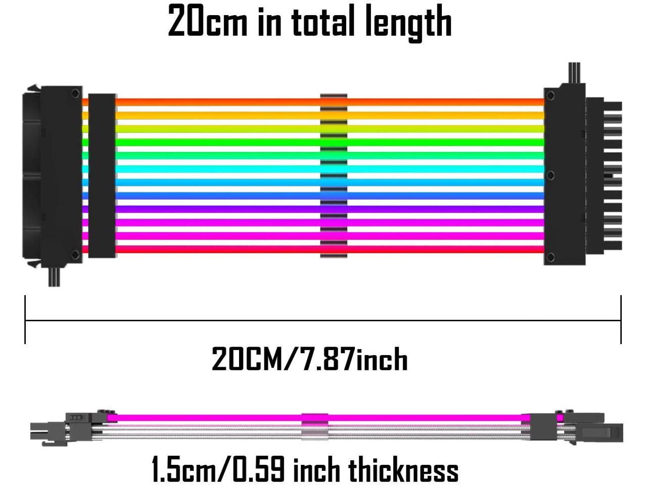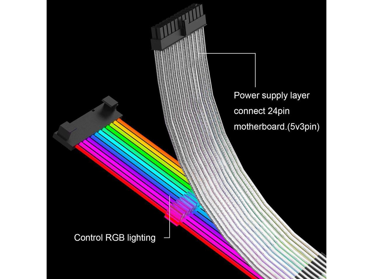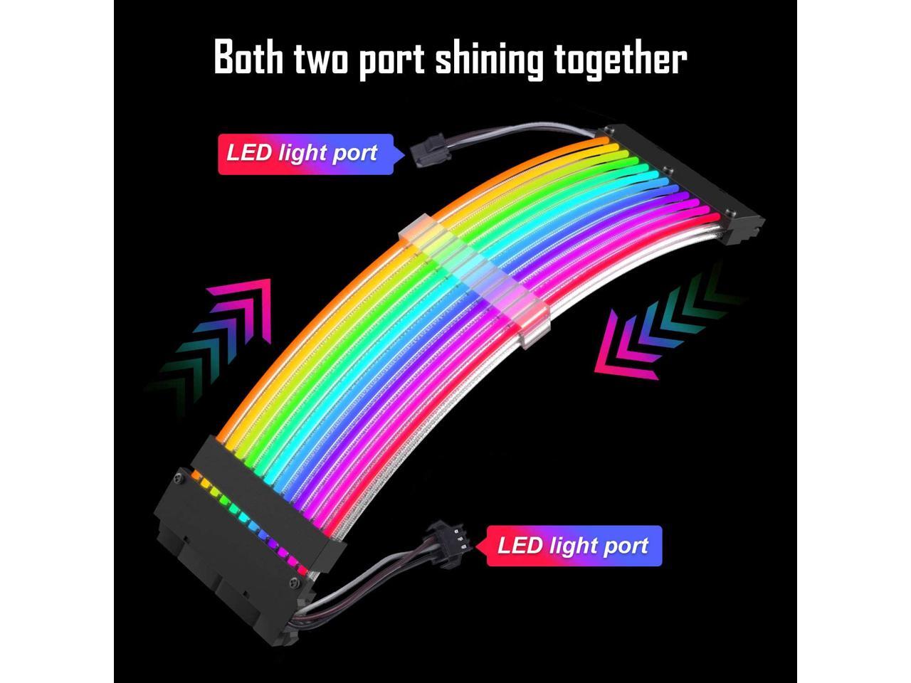 - RGB 24 Pin ATX EXTENSION CABLE: Two LED light strips increase the brightness of RGB.Perfect storage your cables, while making your computer mainframe look shiny, making your case more fashionable.If your motherboard not support ARGB/5v3pin connect,please choose this.