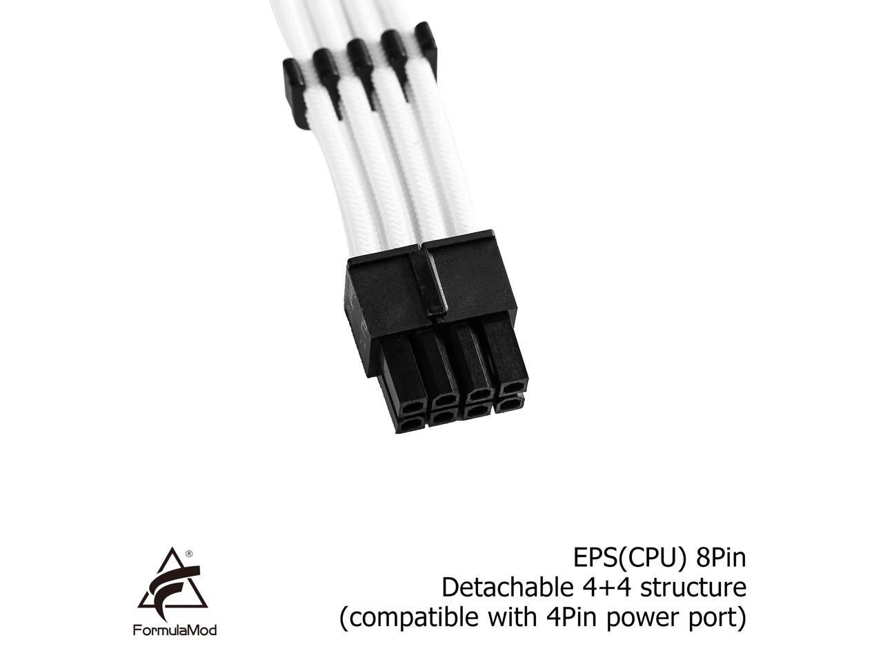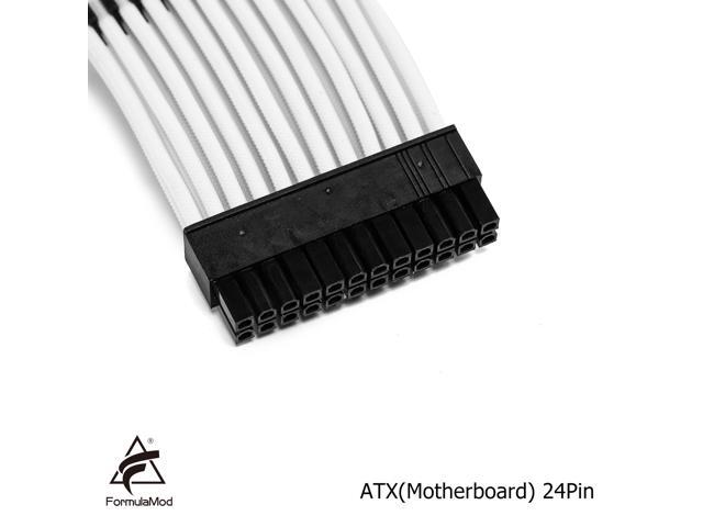 FormulaMod NCK1 Series PSU Extension sleeved Cable Kit , Custom Power Supply Braided Cable Solid Combo 300mm ATX24Pin PCI-E8Pin CPU8Pin With Combs, Kit I White