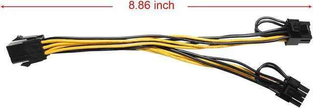 6 PIN to 2 X 8 (6+2) PIN: One end is 6 Pin female port, the other end is 2 X 8(6+2) Pin male port. Convenient solution for adding two extra PCI Express ports to your existing power supply.