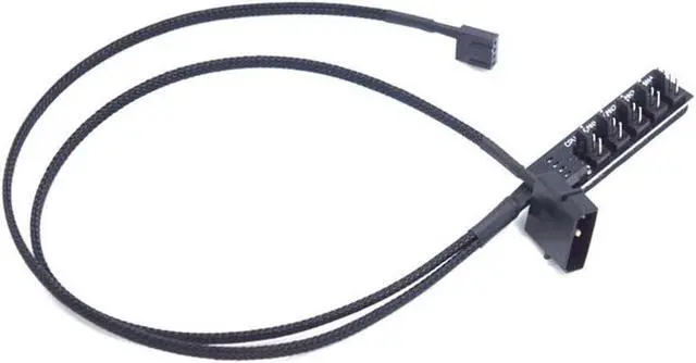 5 Ports PWM fan hub, include 45cm sleeved black power cable, Deal for controlling numerous fans computer system Capable of expanding one motherboard PWM fan header to support up to five fans 12V Hub,
