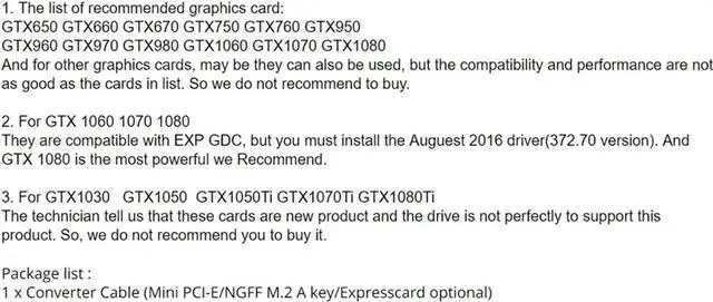 Enhanced MINI PCI-E data line with 26pin interface, supports 54 type and 34 type expresscard interface. With 6pin interface for connecting video card power supply; 8pin interface for connecting EXP GDC power supply.
