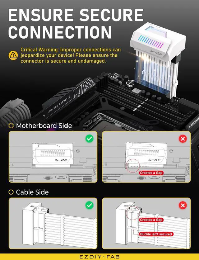 - Please ensure that the clearance between the 24-pin ATX connector and adjacent motherboard components (e.g., USB ports,), which should ideally be at least 8-10mm.