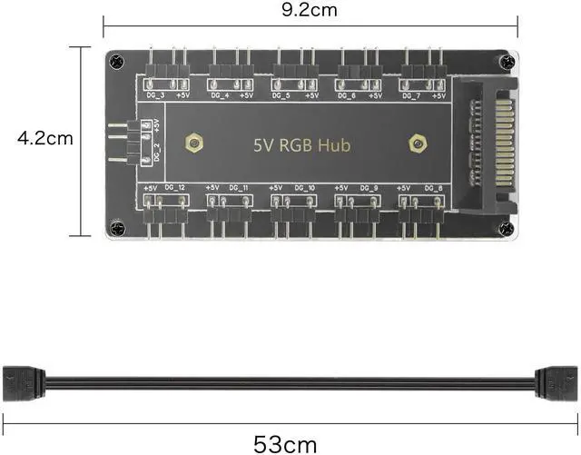 Vszerda 5V RGB LED Splitter Hub can be used to increase the number of addressable RGB plugs in a computer case. Synchronizing the motherboard allows more addressable RGB LED devices to be synchronized. Each channel supports a maximum of 1A.