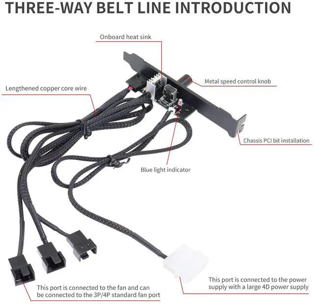 Vszerda 12V 1Knob PC 3 Channels Fan Hub.If your motherboard doesn't have a fan port, or the fan port on your motherboard is broken, a fan hub is a neat way to expand.