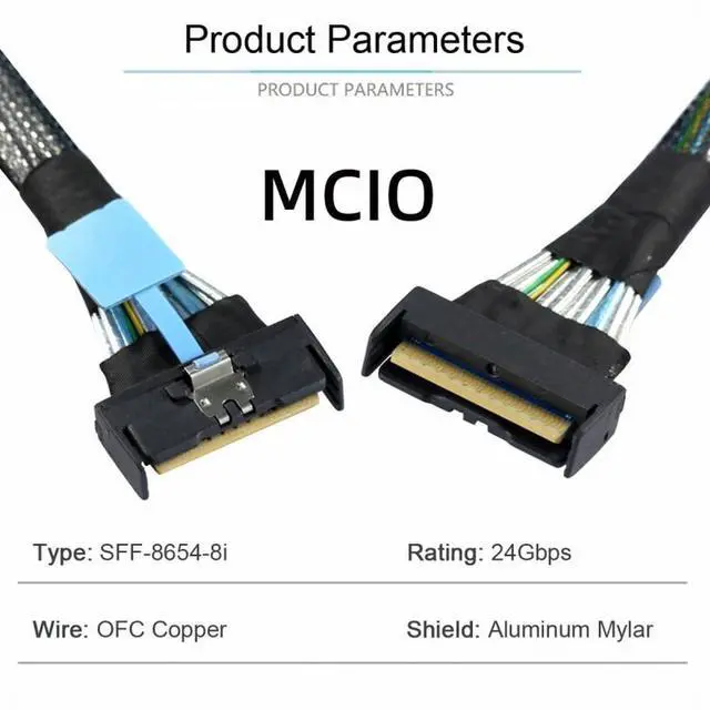 What is mini cool edge Io (MCIO): MCIO cables are designed for data center, networking and telecommunications markets that use SAS, PCIe, Ethernet and othersignal protocols.