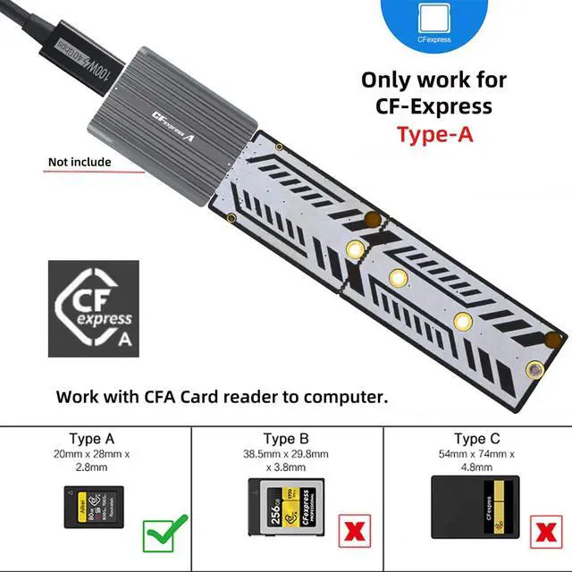 CFexpress Type-A to NVME 2230 2240 2260 2280 Memory Card Kit,Extend the NVME from 2230/2242/2260/2280 SSD to CFexpress Typa-A socket.
