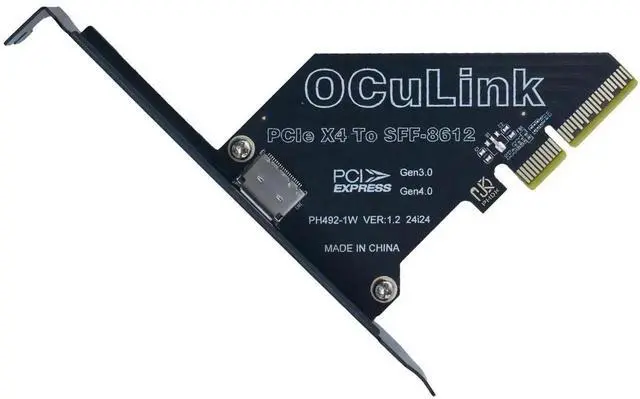 Elevate your PC's connectivity with the PCIe 4.0 to Oculink SFF-8612 External Adapter Card. This innovative card adds an additional Oculink SFF-8612 x4 interface via your PCIe slot, seamlessly integrating more devices like NVMe SSDs or eGPUs using a SFF-8611 cable. Experience the freedom to expand your system without limitations.