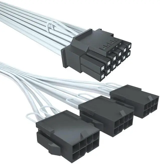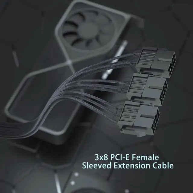 1 Pack 30cm 16pin(12+4) to 3x8pin PCI-e 5.0 sleeved extension cable with 3 cable combs.