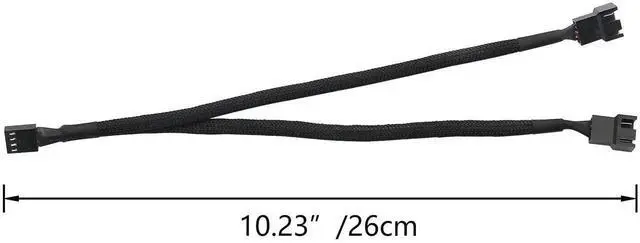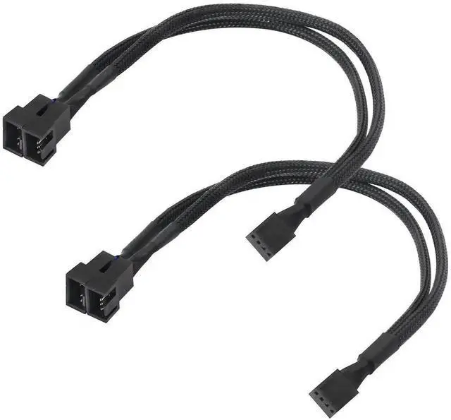 Vszerda 4-Pin PWM Fan Splitter Cable Black Sleeved PC Fan Power Extension Cable 1 to 2 Converter for Computer ATX Case 4-Pin/3-Pin Cooling Fan Cable(1 to 2) 2PCS