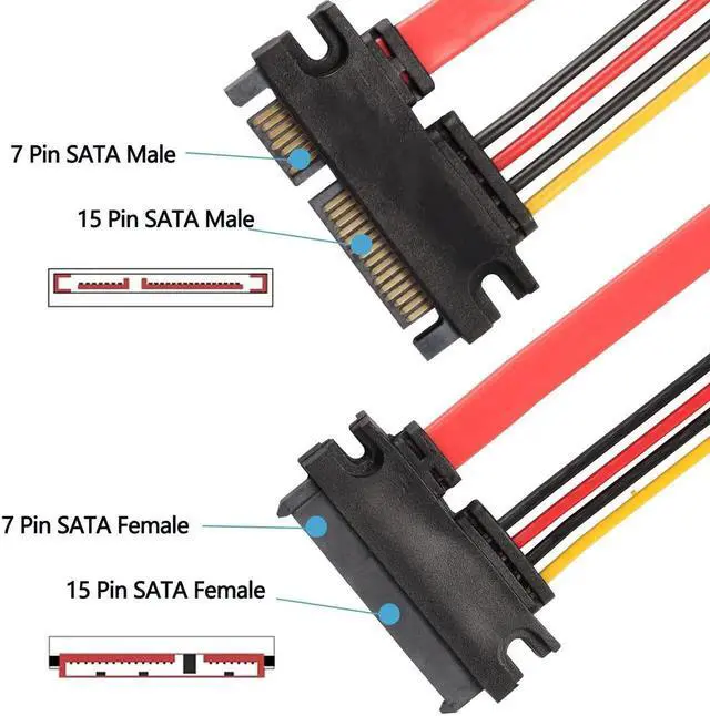 2Pcs sata 22pin(7+15) male to female data power combo extension cable.