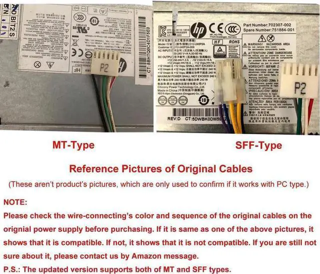 Quantity: 1pcs Self-adhesive tape*1pcs;?? Note?? The image 4th is just reference picture of original P2 connector not our cable's picture. Please carefully check the image 4th of original P2 connector with wires. It was only designed for some types of HP PCs as listed. If you connect it with other incompatible types it will burn or damage the motherboard and we won?? t take any responsibility for wrongly using or installing. Please carefully check the compatible types or contact us if you are not sure about it;