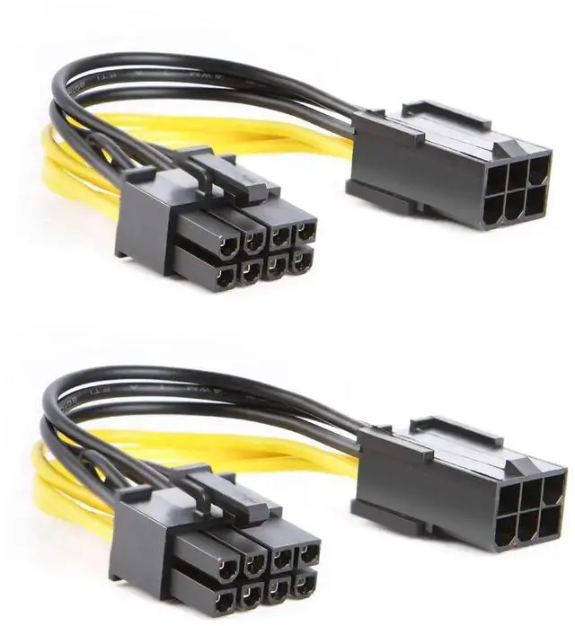 Specifications 6-pin to 8-pin PCIe Power Adapter Cable Connector 1: 6-pin PCIe Male Connector 2:8-pin Male Cable Length:4 inches/100mm Important Notes 1. Please check the specifications of your graphics card and PSU for power requirements and make sure both ends of the cable fit your devices. 2. The connectors are made of plastic. When you plug or unplug, please hold your device and do not pull or push too hard to avoid damage. 3. As 8-Pin graphics cards require high power, please make sure the PSU is rated to power the graphics card, and do not plug the opposite way for fear of burning your devices.