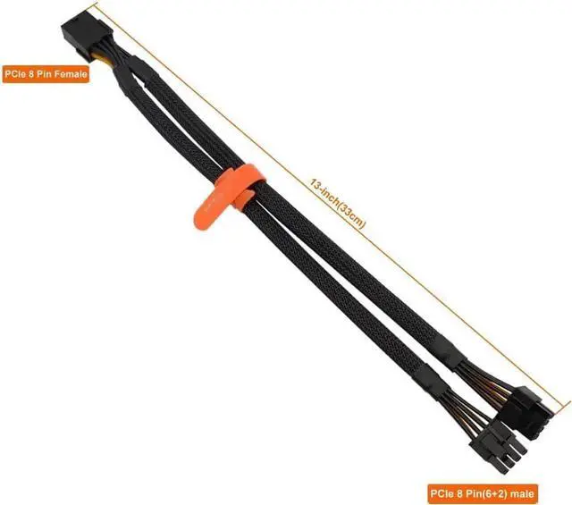 Compatibility: Compatible with 6-pin & 8-pin graphics cards from regular manufacturers such as: ASUS/ASRock/Gigabyte/Radeon/Sapphire/NVIDIA Tesla/etc. (The 8 pin (6+2) ends could be used as 6 pin or 8 pin end by sliding on/off the 2 pin. );