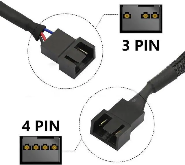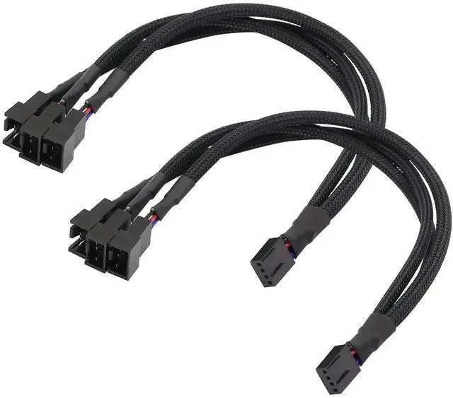 4-Pin PWM Fan Splitter Cable Black Sleeved PC Fan Power Extension Cable 1 to 3 Converter for Computer ATX Case 4-Pin/3-Pin Cooling Fan Cable1 to 3 2PCS