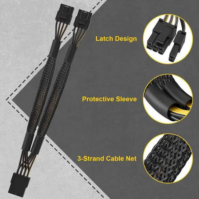 1. Adapts a single 8-pin PCIe power connection to dual 8-pin (6+2) slots, compatible with GPUs requiring multiple connectors