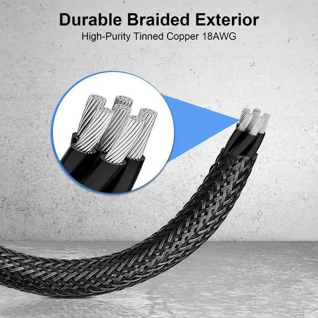Durable Design: Features a robust construction with a flexible PVC jacket, braided sleeve, and 18 AWG tinned copper wires for reliable, secure connections and optimal performance