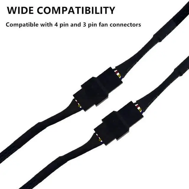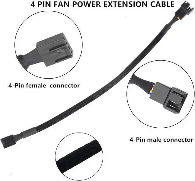 4-Pin male to female fan extension cable, compatible with 4pin PMW fan connector and 3pin fan connector.