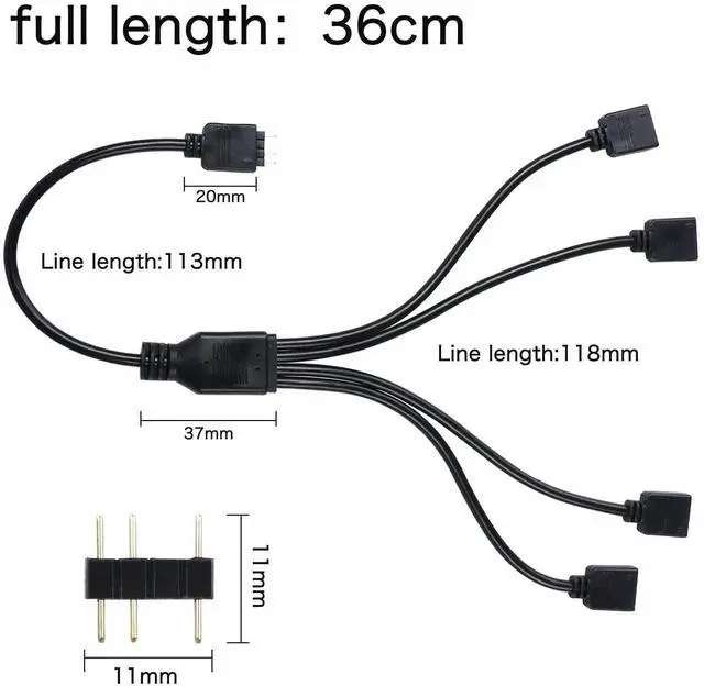 2PCS of ARGB 1 to 4 splitter cable 5V 3-pin (11.8 Inches)