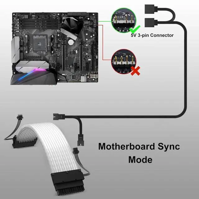 ARGB Extension Cable: Features 24 LED beads with dual-row lighting, aluminum foil braided cables, and optical fibers, providing bright and vibrant illumination for motherboards