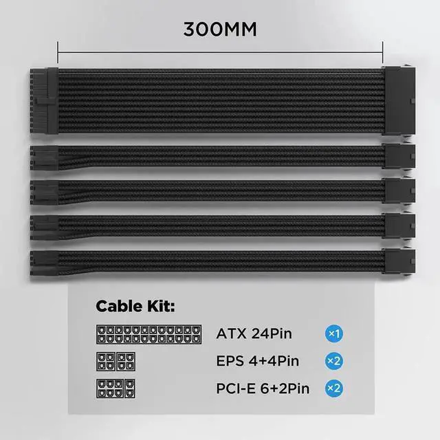 Specification: Interface Type: Male (5557) to female (5559) Cable Core: 18 AWG Cable Diameter: 3.5 mm Length: 11 4/5 inch (300cm) Default Standard: 1 x ATX 24PIN 2x EPS 4+4PIN 2x PCI-E 8Pin(6+2) Cable Combs: 4 x 24Pin 12 x 8Pin 6 x 6Pin Purchase Notes: Because of the different display setting of each computer, the pictures and real objects will be slightly color different. If you need DIY adjustment, please pay attention to use special tools and not use too much force. In case of upgrading to the appearance and structure, or different batches of material, no further notice, the real object shall prevail.