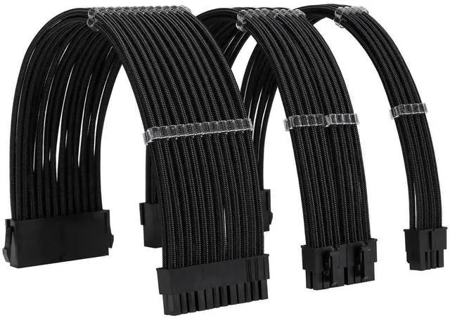 Vszerda Sleeve Extension Power Supply Cable Kit 18AWG ATX 24P+ EPS 8-P+PCI-E8-P with Combs for PSU to Motherboard/GPU (Black)