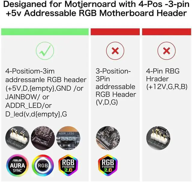 Note: Only supports 3 pin 5V addressable rgb motherboard headerdoes not support 4 pin 12V RGB header.
