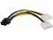 This power cable has a PCI-E eight-pin plug on one end that connects to your PCI Express video card with the other ends connecting to two separate Molex 4pin connectors (preferably on two different lines) of your power supply.