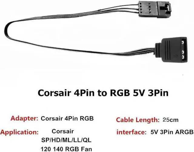 Vszerda Corsair 5V 3-Pin ARGB to RGB 4Pin Male LED Adapter Cable for HD LL120 140 QL Fan 1.64 ft