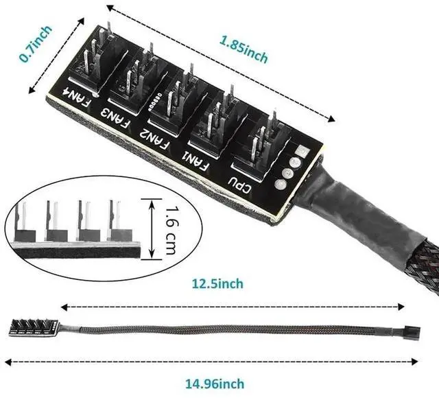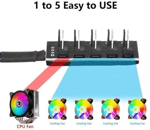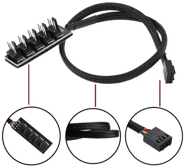 • 4/3PIN PWM Fan Hub CPU Cooling Fan Power Cable Hub Adapter Sleeved Case Splitter for Computer Cooler Case Fans 1 to 5(15.7 Inch)