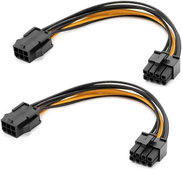 6 Pin to 8 Pin PCIe adapter power cable provides a convenient solution for supplying video graphics card power with an 8 pin connector for GPU cards that require more power.