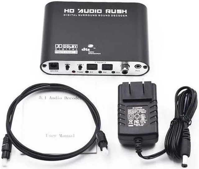 Uses 24-bit audio DSP, 96 KHz digital receiver, and 192 KHz or 24bit ADC and DAC. Support Dolby Digital AC-3 Dolby Pro Logic, DTS, PCM andother digital audio format decode source, a variety of sound field and the replay results of two listening modes, 5.1 analog audio output, will auto work with different amplifiers and speakers To create different sound effects, just add many entertainment devices that use optical and coaxial digital signal and analog output signals, such as: set-top boxes, for HD players, for Blu-ray DVD, for PS2, for PS3, for XBOX360